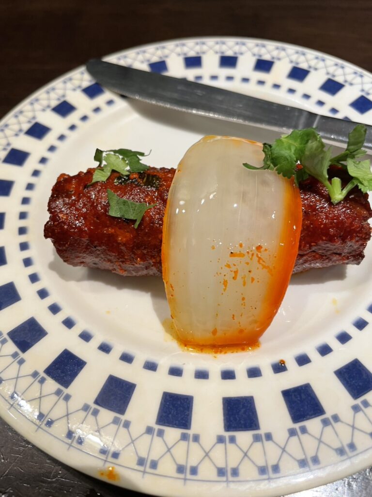 そしてランチセットで特別に330円追加で注文できる《シッカバブハーフサイズ》がこちら!今まで食べたどのシッカバブ(シシカバブ)より香りがよく噛むほどにジューシーさを感じることができました。これはインド料理好きな方はぜひ頼んでください。