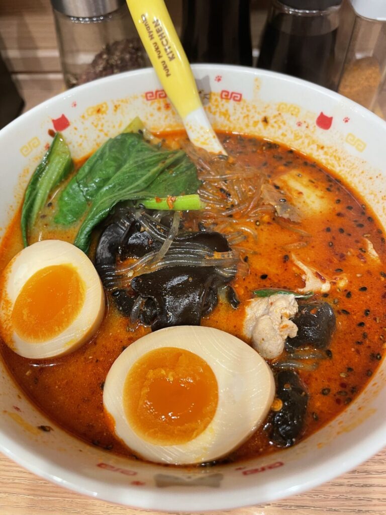 謎にご好評いただいている《やさ姉メンエス飯シリーズ》、今回は当店ご来店後にお召し上がりいただきたいお店を紹介差し上げます。今回はJR西日暮里駅徒歩1分の、【麻辣湯専門店 美香(メイシャン)】さん。入口にトングとざるが置かれていて入口すぐの冷蔵エリアに並んでいる食材を好きに選んでスタッフさんに渡し、辛さ(0~4)と麺の種類(太春雨、細春雨、中華麺、刀削麺)をそれぞれ選んで支払いを済ませると調理して運ばれてくるシンプルなシステムです。食材は5品までは基本料金(1,100円ぐらい)、その後1品増えるごとに150円ぐらい(正確な金額は失念💦)する形になります。私は辛いの好きなのでいつも3辛(激辛)&細春雨を選んでいます。具は味付玉子、ラム肉、小松菜、きくらげ迄は鉄板で豚肉かしめじを加えて5品にすることが多いです。海老、ホタテといった海鮮やお肉も牛・豚・鳥、野菜もかなりのバラエティなのでどなたでもご自身のお好みの一杯を作ることができます。